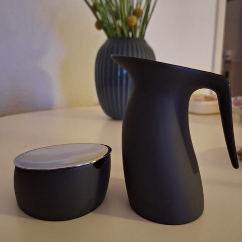Sukker og flødesæt, Georg jensen, Quark, sort, fin stand, 3 dele.