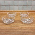 Glas, Smørskåle, 4 små fine krystalskåle, der passer fint som smørassietter el. lign. Meget fin stand - skinner som en million. Sælges samlet og prisen er for dem alle.