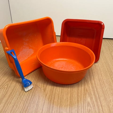 Flot " Madam rød" emaljeret vaskefad med sort kant.
