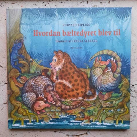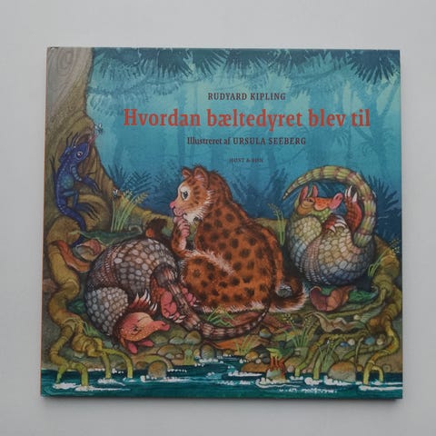 Hvordan bæltedyret blev til, Rudyard Kipling og Thormod Kidde, Illustreret af Thormod Kidde. I gamle dage ved Amazonfloden boede pindsvinet Strikkeprikke og skildpadden Panserkugle. De drillede en pletjaguar og forvandlede sig til bæltedyr.