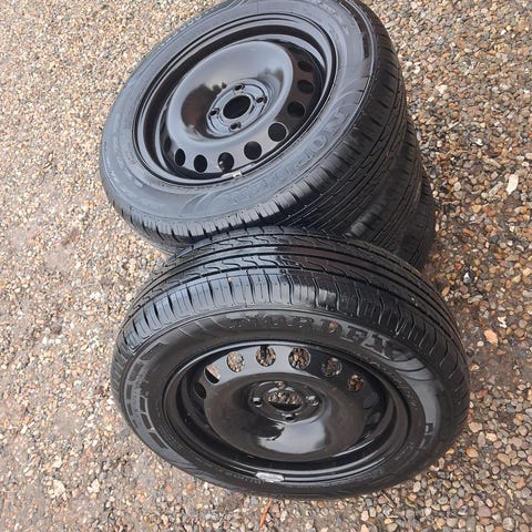 Stålfælge, 15", Originale, 195 / 55 / R15, andet mærke, 100% mønster, fælge med dæk, 4 brugte helårgsdæk imperial nesten som nyt dem fra neste år med 100% mønster på elle 4 komplet set med stål felge original renult dem passer til renult Clio og mange renult og fiat 195 55 15 prisen er 2000kr og 2200kr inklusive montering på bilen