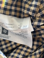 Dette er en vendejakke, som er beige på den ene side og blåternet på den anden.