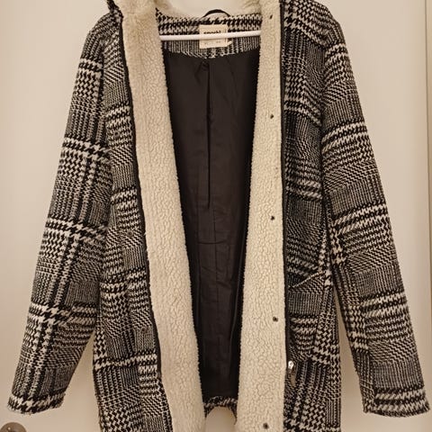 Frakke, str. 40, Windsmoor, Sort og beige "salmiakki" mønster
