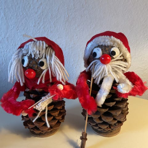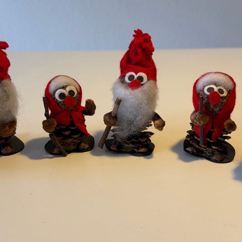 Det sidste (billede #4) nissepar er nyere. Sælges for 50 samlet.