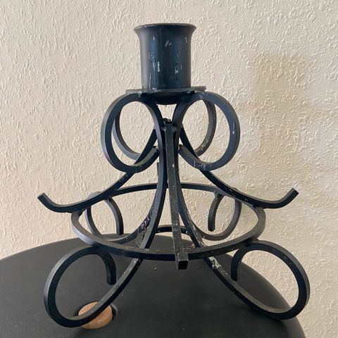 Lysestage, Stor rund jern stage til 6 store lys. Diameter 39 cm. Højde 8 cm. Diameter til lys 7 cm. Pris 200 kr. Se også mine andre annoncer. Hv123