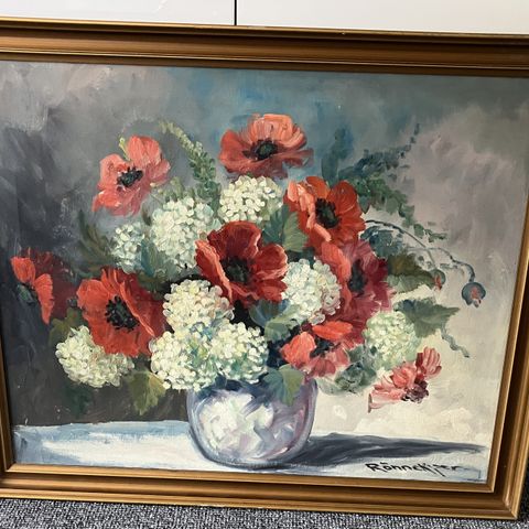 Oliemaleri, Rønne Kjær, motiv: Blomster/Have