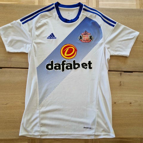 Stand: Sponsor er fjernet helt. Derudover lidt hvidt beskidthed bagpå og en fedtplet på kraven. Se billeder.