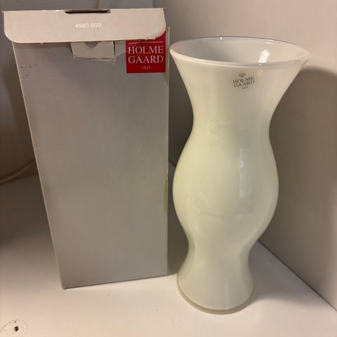 Flot hvid glas vase. Quadro serien er designet af Peter Svarrer for Holmegaard, og yderst dekorativ med og uden blomster. Holmegaard producerede serien fra 1998-2004
