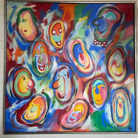 Akrylmaleri, Anni Grøndahl, motiv: Abstrakt, stil: Abstrakt, b: O,40 h: 0,60, Todelt kompensation. Er signeret.