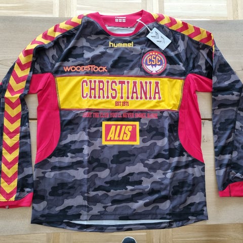 Fodboldtrøje, Christiania 2016/2017, Hummel, str. 3XL (fitter 2XL), Langærmet Christiania Sports Club-trøje fra 2016. Den er helt ny med tags og har aldrig været brugt. Størrelsen er 3XL men den fitter bedre en 2XL da den måler 82x64.