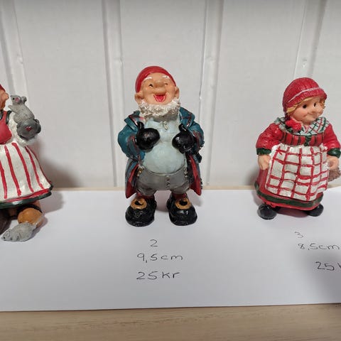 Gårdmisser, 75 kr stk, den store med 2 nisser og skål 100 kr