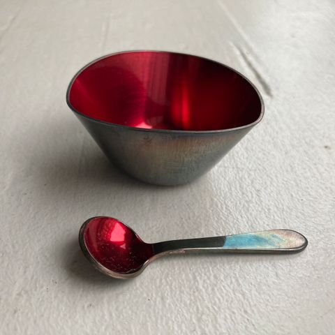 Sølvtøj, Saltkar, Med glasindsats - se billeder og tekst sidste billede. Pletsølv.