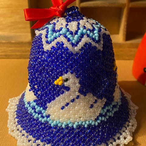 Perleklokke & messingklokke, Skal du ringe julen ind er her et godt tilbud. 2 meget flotte juleklokker. Den ene i perlebroderi og den anden i messing.
