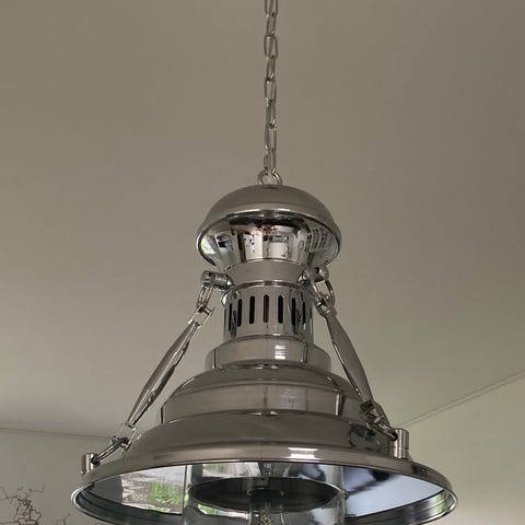 Ukendt Industriel Loftlampe med metalophæng og sort finish. Lampen har flere lyskilder med synlige glødepærer og metalophæng, hvilket giver et industrielt udseende. Passer til forskellige indretningstyper og kan anvendes i stuer, køkkener eller spisestuer.