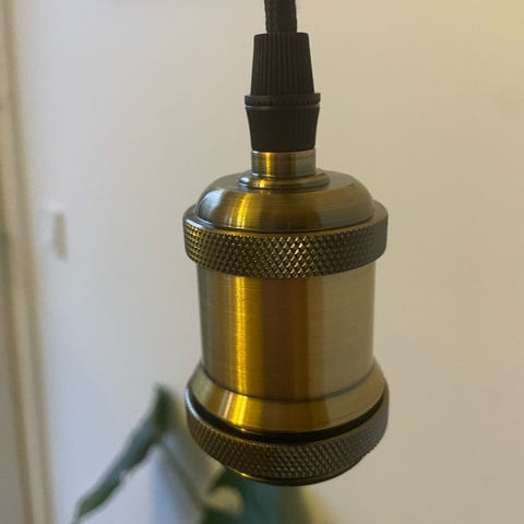 Messing lampetop, Beregnet til at sætte på toppen af en vase, hvis denne skal omdannes til en lampe. Diameter 10cm, højde 5cm. Med hul foroven til at føre ledning igennem. Pris pr stk 100kr eller begge for 150kr