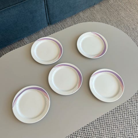 Brugsspor men ellers fine bortset fra 1 dessert, der har et lille bitte nag på kant.
