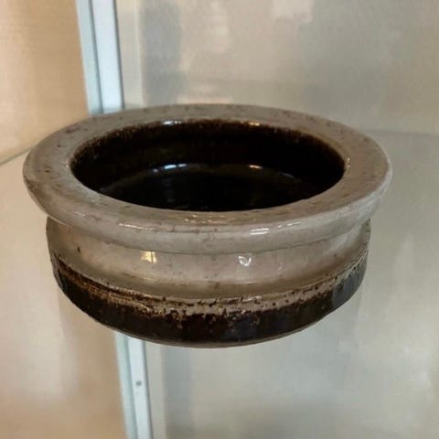Stentøj retro skål med brunlige farver og mønstret Står i flot stand uden skader.