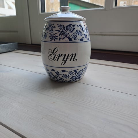 Keramik, Krukke opbevaring, Retro gammel håndmalet håndlavet, Super fin beholder til fx køkken (løg etc)