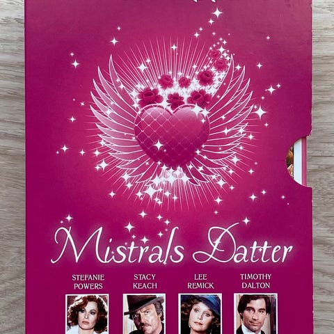 Mistrals Datter (Box-set med 4 Discs), instruktør Kevin Connor og Douglas Hickox, DVD, drama, /Romantisk TV-Mini-serie fra 1984. Hele serien. Samlet spilletid: 6 timer og 30 minutter. Efter Judith Krantz' bestseller-roman.