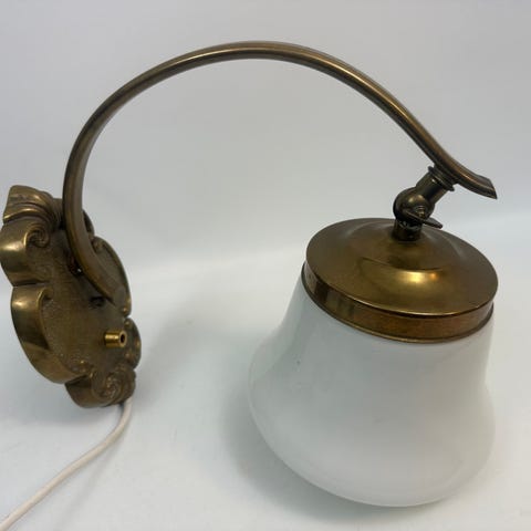 Væglampe, Vintage messing lampe med opalglas, Der er her tale om en flot vintage væglampe i messing og skærm i opalglas. Dansk produceret af 'ABO''
