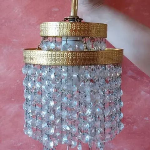 Lysskærmen er i glas med prisme vedhæng.