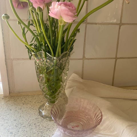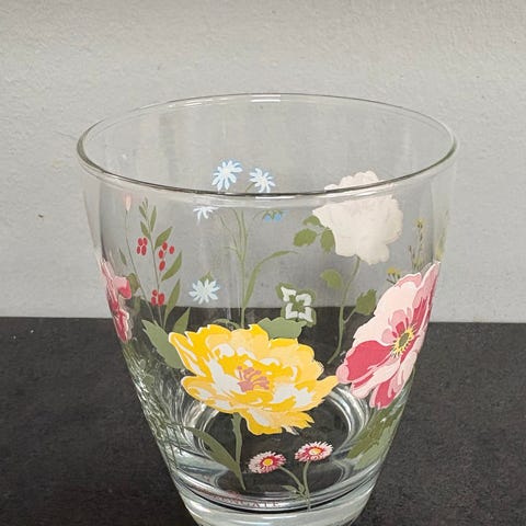 Fin italiensk Cerve glas flaske med rose motiv og patentlåg. Cerve made in italy.