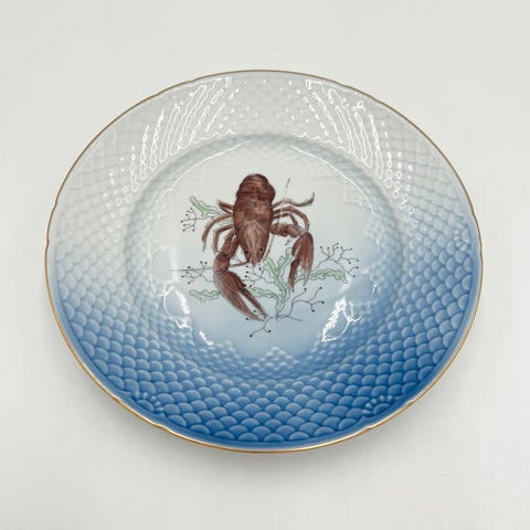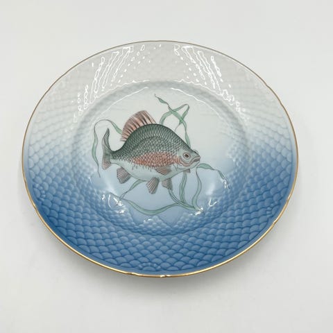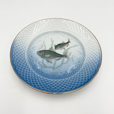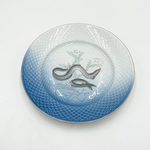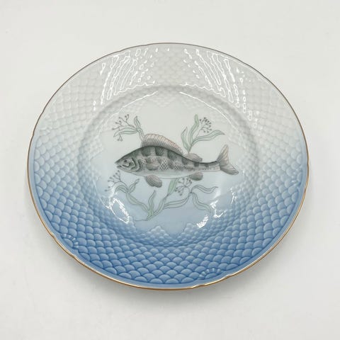 Porcelæn, 8 Fisketallerkener, B & G, Fisketallerkener ,Hvid form, Ø 21,5 cm. B& G , produktion fra 1952 - 1958. Pris 150,stk. Samlet pris 900,- for alle 8 stk.