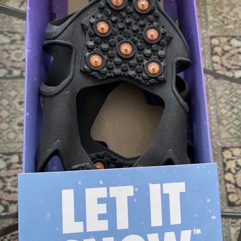 Andet, Snesko / Pigsko, str. L, Nye / Ubrigte Kvalitets pigsko med metal pigge, på både forfod og hæl, for sikker kontakt med det ellers glatte underlag. Spændes Trækkes nemt ud over dine forskellige sko, så de kan bruges når som helst du skal færdes ude i vintervejret.