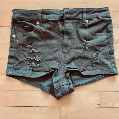 Shorts, DIVIDED (H&M), str. 36, Blå, Bomuld og elastane, Næsten som ny, Shorts hvor er der huller i og at det skal ligne at de er slidte. Derudover er der tråde der hænger ud af begge ben.