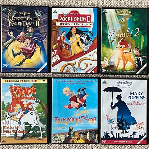 Disney Diverse Tegnefilm, DVD, tegnefilm, 6stk, samlet pris.