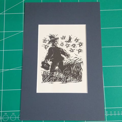 Linoleumstryk , Jørgen Lindhardt Rasmussen, Dystert, nærmest mareridtsagtigt linoleumssnit af kunstneren Jørgen Lindhardt Rasmussen.