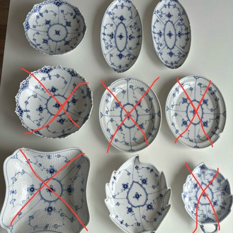 OPHØRSUDSALG i Interiørstalden ‼️ Porcelæn, Tekande, fade, kopper, tallerkener , Den Kongelige Porcelænsfabrik, Royal Copenhagen stellet : HJERTEGRÆS ??