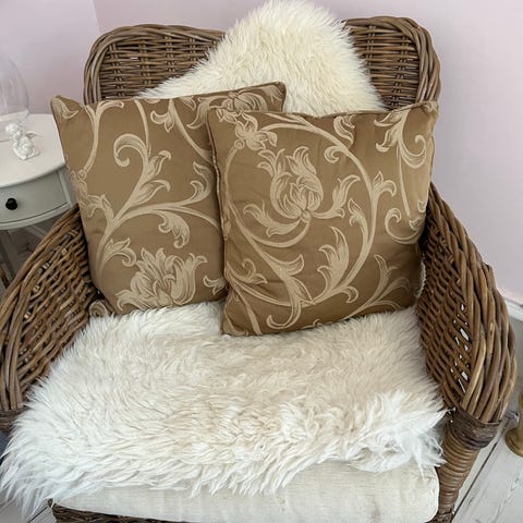Pudebetræk / sofapude, Petroliumsblåt og beige er begge i velour.