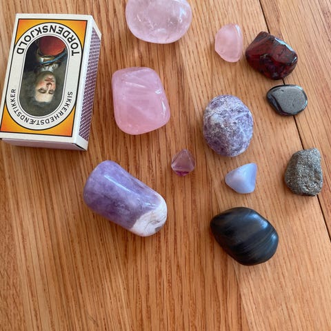Smykker og sten, Blandede lommesten., 9 stk. blandede lommesten, med en samlet vægt på 116 gr.