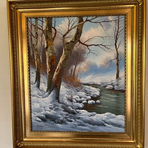 Oliemaleri, A Bela Gabris, motiv: Landskab, b: 90 h: 60, Fremstår meget fin stand mål er uden ramme billede Er indrammet