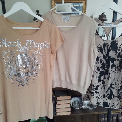 har mange bluser, topppe, kjoler, sweaters, etc etc.