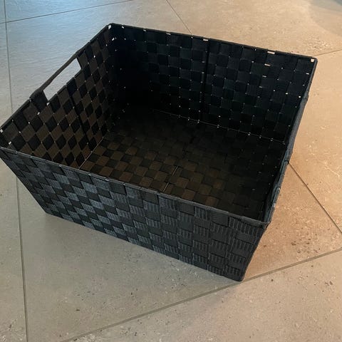 Indkøbskurv/opbevarinskurv, Der er sorte skridsikre gummihåndtag.