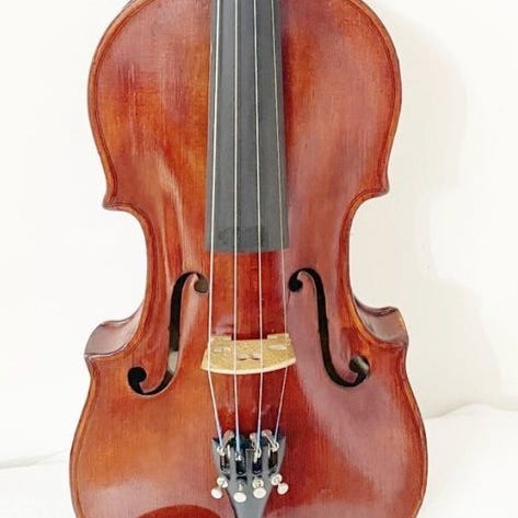 Violin 4/4, Violin bygget i Bubbenreth i ca. 1985 købt hos Jørn Nielsen og er en "musikskole violin".