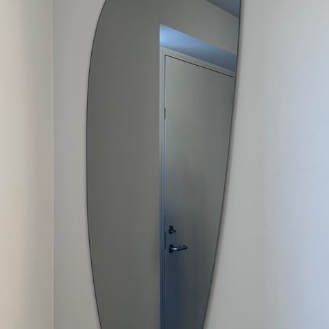 Gulvspejl, Flot hvidt gulvspejl. Kan vippes. Står solidt. Skal afhentes eller evt leveres mod betaling.