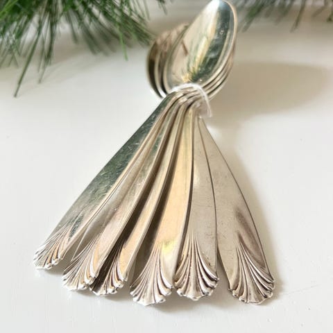 Bestik, Dessertskeer, Ukendt, 12 smukke dessertskeer i sølvlignende metal har set sdan ud i 30 år uden pudsning