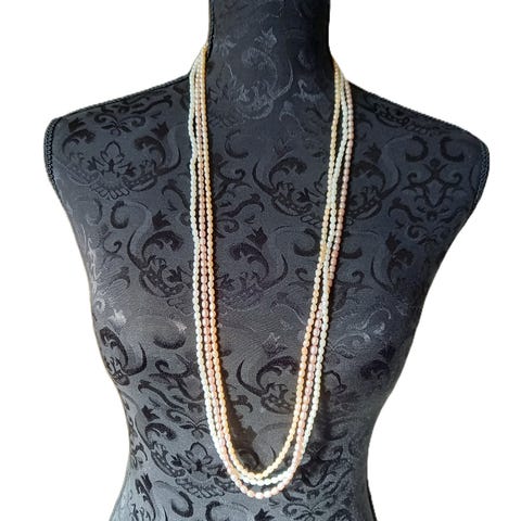 Halskæde, perler, Biva mini ferskvandsperler, 2 halskæder med Biva ferskvandsperler mini, kan bæres som lang kæde eller snoes sammen til kort kæde og lukkes med lås.