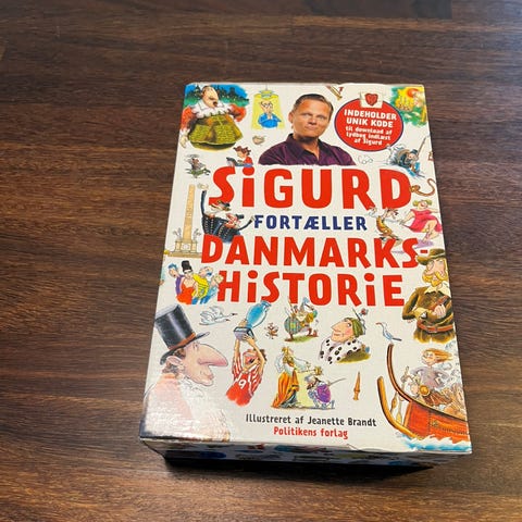 Sigurd fortæller Danmarkshistorie 1+2, Sigurd Barret, Fra Politikens Børnebøger år 2016 i 1. udgave, 1. oplag - Illustreret af Jeanette Brandt. Begge i hardcover og består af 2 bind samlet.