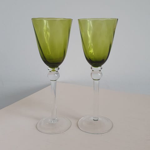 Glas, Grønne vinglas, Flotte grønne vinglas uden skår 10 cm høje