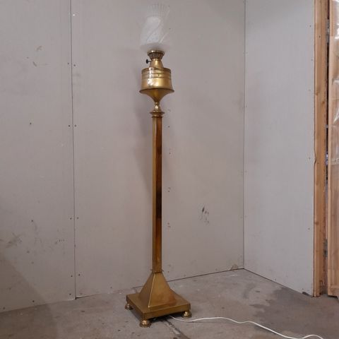 Gulvlampe, Militær granat i messing med stor leklint skærm