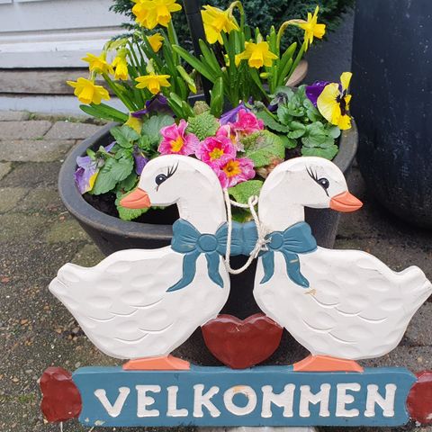 Skilt, Dørskilt, navneskilt, Flot hjemmelavet porcelænsmalet skilt til ophængning udenfor. Kan evt. males over og males med nyt motiv/tekst.