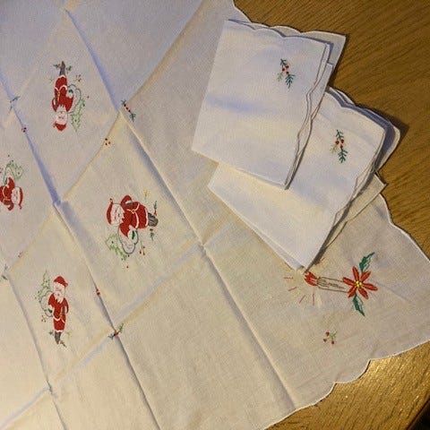 Flot broderet dug på fin stykke stof
