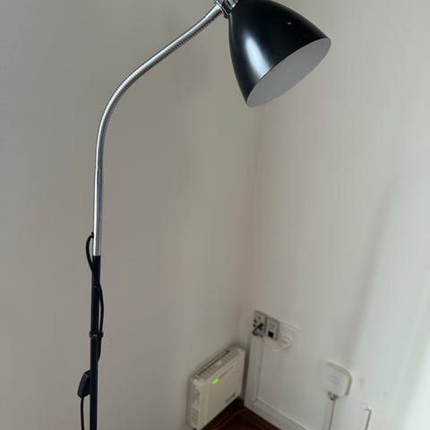 Gulvlampe, Ikea, Sælger denne lampe fra Ikea, da jeg ikke har plads til den mere. Den har et par ridser i foden som jeg har markerer på billedet.