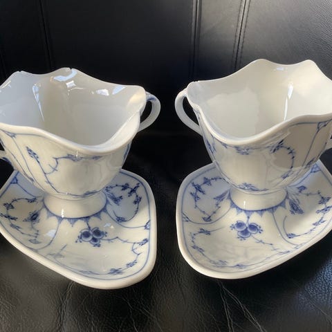 Porcelæn, Smuk Antik musselmalet sauceterrin, sjælden