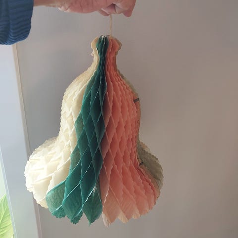 Stor juleklokke i plast med sukkerpynt. 5,5 cm høj.
