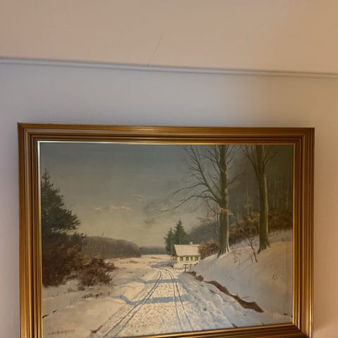 Maleri, Flot maleri Vinter motiv. Maleri af W. Dannerfjord.